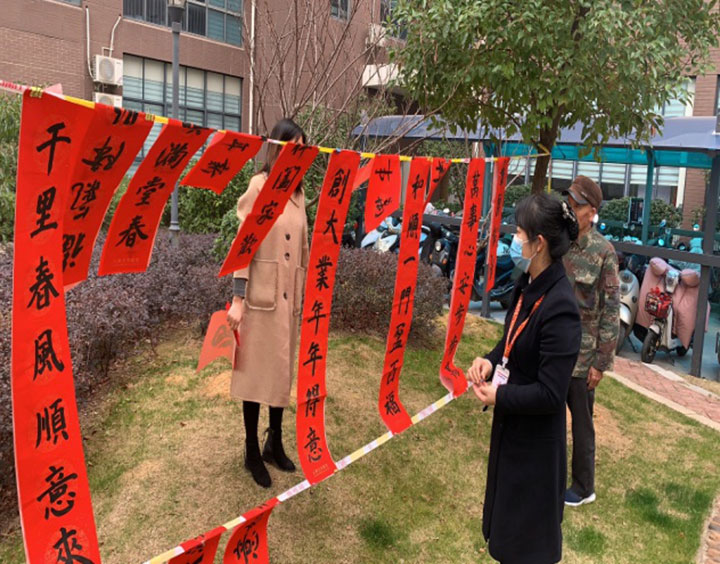 一大早,贛州城投集團振興實業(yè)公司黨支部黨員、入黨積極分子來到創(chuàng)業(yè)家園小區(qū),有的與部分租戶一起掛燈籠中國結,營造濃厚的節(jié)日氛圍;有的組織書法志愿者為租戶春聯、“福”字;有的組織醫(yī)護志愿者為租戶開展免費量血壓、血糖、提供醫(yī)藥建議等義診活動。