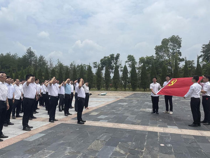 大家首先前往蘇區(qū)時蘇維埃政府工作的模范鄉(xiāng)——長岡鄉(xiāng),領(lǐng)悟中國共產(chǎn)黨人深厚的為民情懷、科學的思想方法和務(wù)實的工作作風。隨后大家懷著對革命先烈無比崇高的敬意瞻仰了中央蘇區(qū)烈士陵園。在烈士紀念碑前,整齊列隊,懷著無比崇敬的心情,向革命先烈敬獻花籃,默哀并三鞠躬,深切緬懷革命先烈。全體黨員在莊嚴的黨旗下,高舉右拳重溫入黨誓詞,再次接受心靈的凈化和洗禮,銘記共產(chǎn)黨員初心使命。工程管理公司一、二支部還宣講了黨史故事,講述了江善忠“死到陰間不反水,保護共產(chǎn)黨萬萬年”和李美群“馬前托孤女英雄”的英烈事跡。