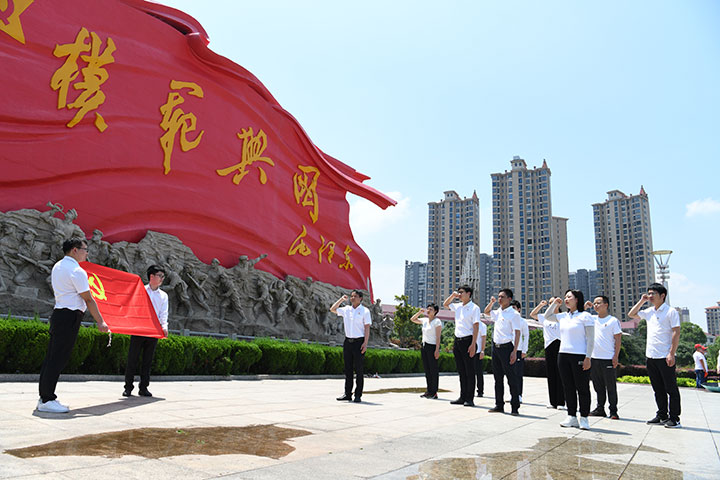 在將軍園三面軍旗及69位革命先烈沖鋒陷陣的大型群雕前,大家重溫入黨誓詞,鏗鏘誓言在將軍廣場回蕩,黨員們對自身的擔當和使命都有了更加深刻的領悟。