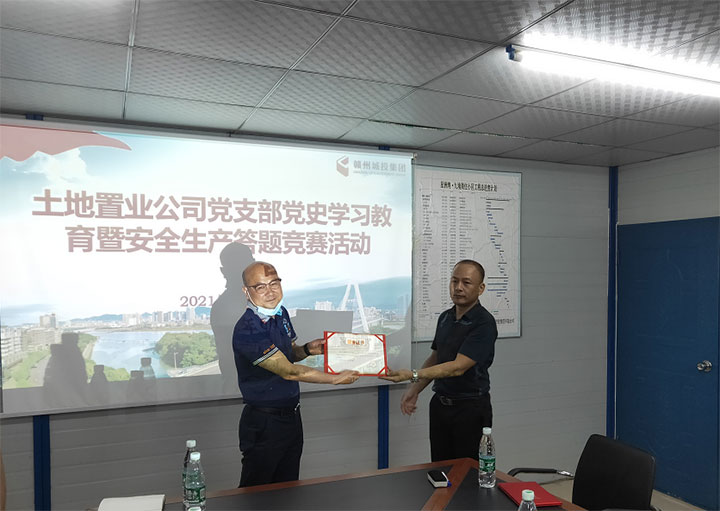 為進一步鞏固深化黨史學(xué)習(xí)教育成果,促進建黨100周年期間的安全生產(chǎn)工作,日前,土地置業(yè)公司黨支部在星洲灣·九境項目部會議室舉辦建黨100周年黨史學(xué)習(xí)教育暨安全生產(chǎn)答題競賽,土地置業(yè)公司全體員工,星州潤達集團、贛州建工集團、星洲地產(chǎn)部分代表等20余人參加。