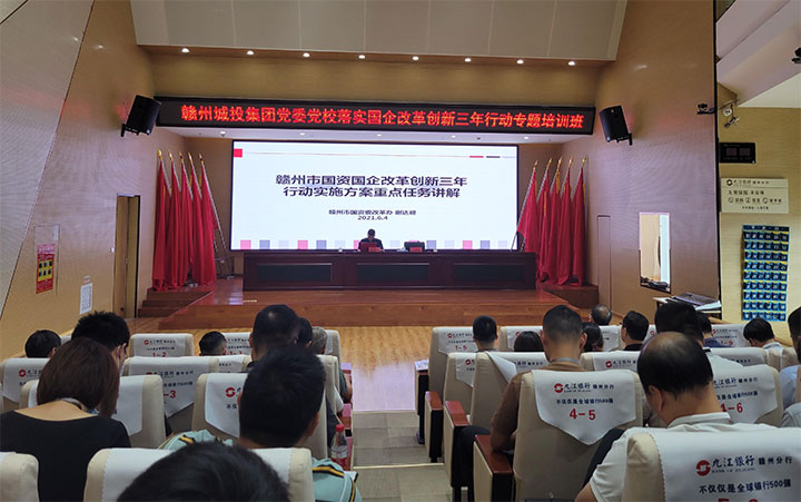 6月23日下午,贛州城投集團(tuán)黨委黨校舉辦落實(shí)國(guó)企改革創(chuàng)新三年行動(dòng)專(zhuān)題培訓(xùn)班,集團(tuán)黨委委員、總工程師王遠(yuǎn)平,黨委委員、紀(jì)委書(shū)記曾富有出席,市國(guó)資委宣教科科長(zhǎng)謝達(dá)迎應(yīng)邀作專(zhuān)題輔導(dǎo),集團(tuán)全體中層管理人員,相關(guān)部門(mén)、子公司人員共計(jì)70余人參加培訓(xùn)。