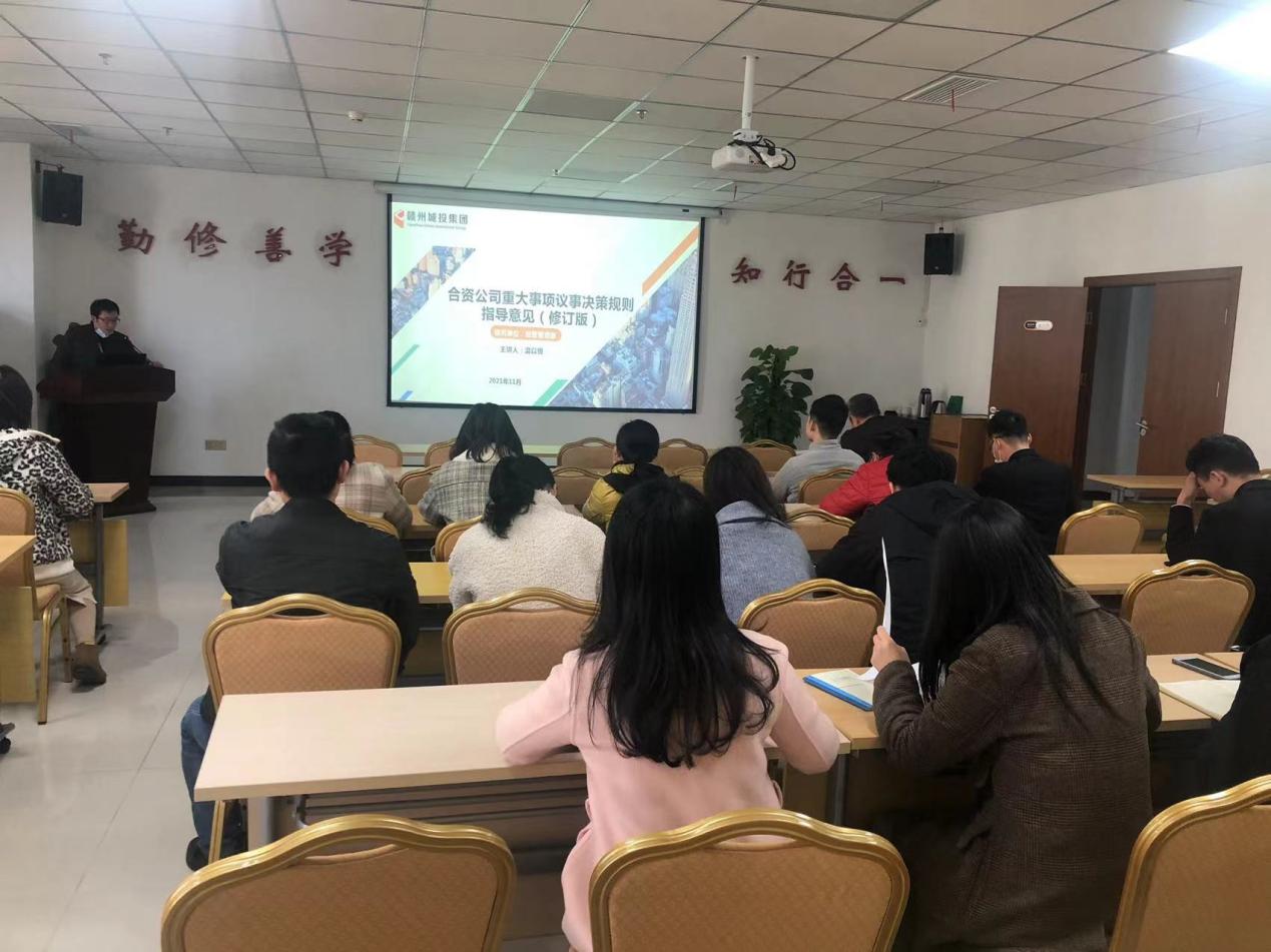 日前,贛州城投集團黨委黨校舉辦合資公司重大事項議事決策規(guī)則指導(dǎo)意見專題培訓(xùn),集團經(jīng)營管理部人員對相關(guān)內(nèi)容進(jìn)行宣貫。集團相關(guān)業(yè)務(wù)部門、一級子公司經(jīng)營管理人員以及集團外派人員等參加此次培訓(xùn)。
