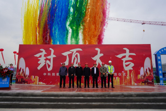 11月30日上午,中科院贛江創(chuàng)新研究院一期新建項(xiàng)目科研樓與會(huì)議交流中心項(xiàng)目物理樓、化學(xué)樓主體結(jié)構(gòu)舉行封頂儀式。