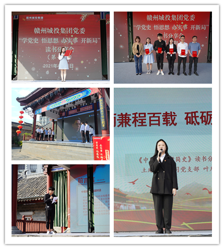 贛州城投集團黨委“學(xué)黨史 悟思想 辦實事 開新局”讀書分享會將每月舉辦一期,每期充分結(jié)合各黨支部業(yè)務(wù)特色,走進(jìn)社區(qū)、走進(jìn)項目、走進(jìn)基層等,一直持續(xù)到11月份共舉辦八場,前七期由集團黨支部結(jié)對聯(lián)合承辦預(yù)賽階段,第八期將由集團黨委主辦讀書分享會總決賽。