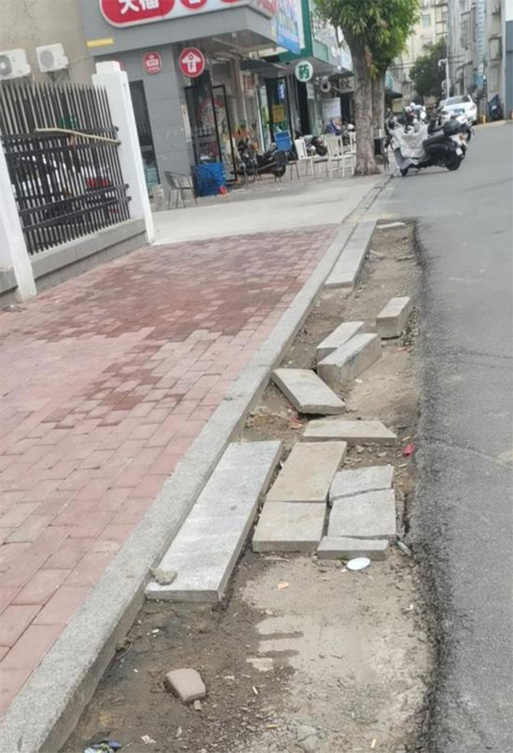 接市民反映,章江新區(qū)返遷房H4地塊臨石城路部分道路設(shè)施缺失,影響出行,存在安全隱患。工程管理公司黨總支立即組織項(xiàng)目管理人員赴現(xiàn)場(chǎng)核實(shí),發(fā)現(xiàn)H4地塊紅線(xiàn)外有長(zhǎng)30米,寬0.3米的路段未攤鋪瀝青砼。經(jīng)了解,由于2018年石城路“白改黑”施工期間,因H4地塊在施工過(guò)程中沿人行道邊緣設(shè)置了臨時(shí)圍擋,導(dǎo)致攤鋪機(jī)無(wú)法通過(guò)進(jìn)行攤鋪瀝青。