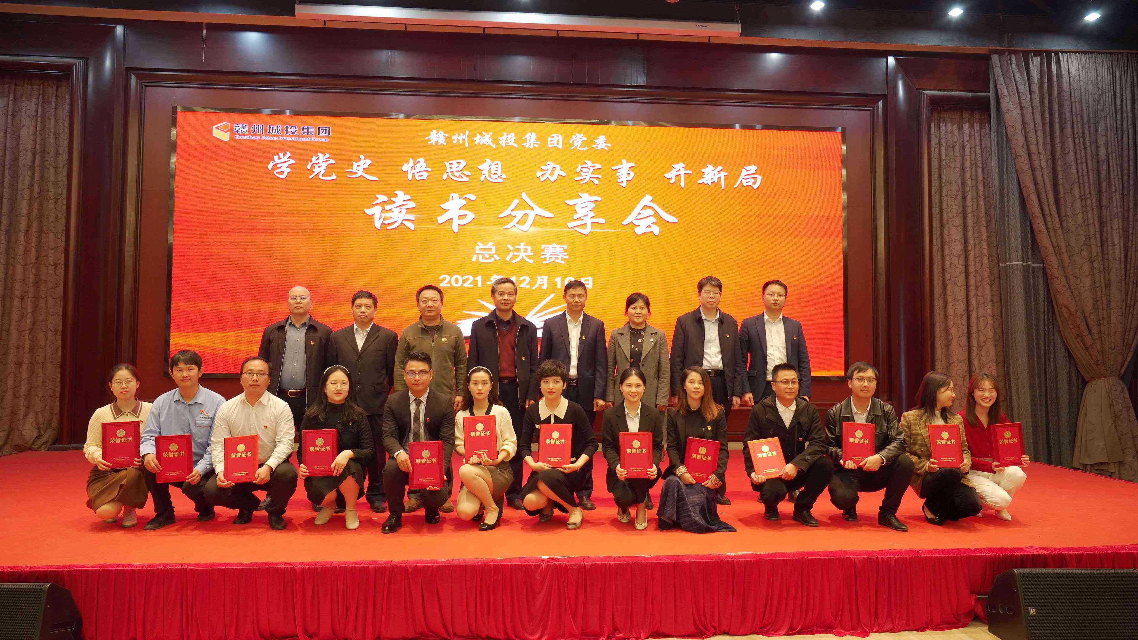 12月10日上午,贛州城投集團(tuán)黨委“學(xué)黨史 悟思想 辦實(shí)事 開(kāi)新局”讀書(shū)分享會(huì)總決賽圓滿落幕。市國(guó)資委黨委委員、副主任黃曉東和相關(guān)科室負(fù)責(zé)人、市國(guó)資系統(tǒng)其他集團(tuán)分管領(lǐng)導(dǎo)以及黨群口負(fù)責(zé)同志蒞臨指導(dǎo),集團(tuán)黨委副書(shū)記黃家偉出席活動(dòng),集團(tuán)全體黨員到現(xiàn)場(chǎng)觀看。