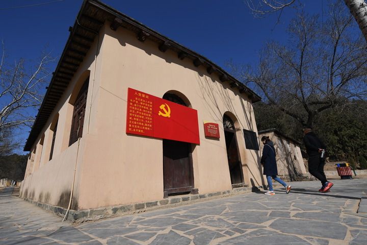 △游客進(jìn)入河北省平山縣西柏坡中國共產(chǎn)黨七屆二中全會會址參觀(2019年3月6日攝)。新華社記者 牟宇 攝